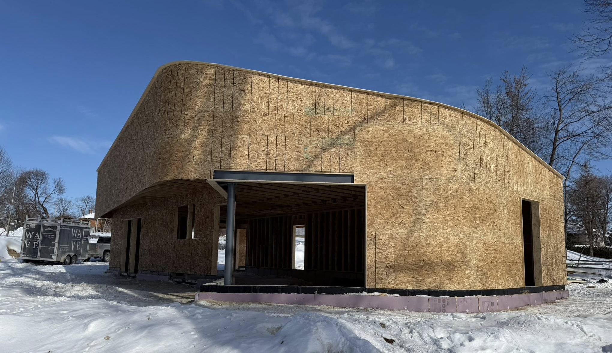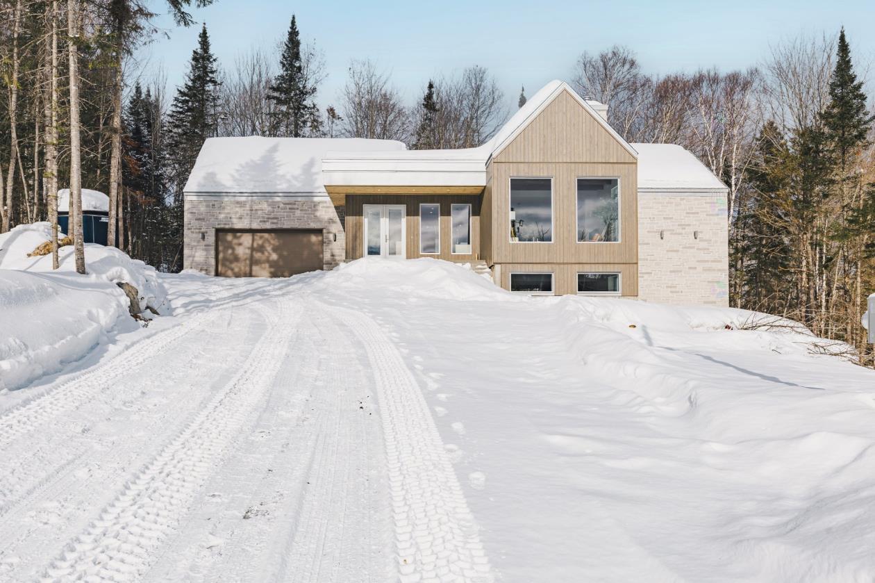 Les constructions WAVE vous présentent cette magnifique maison très bien situé en bordure d'un lac. Le client à choisi un revêtement de Canexel de couleur Sierra agencer avec un revêtement d'acier Moderno de couleur noir charbon.
