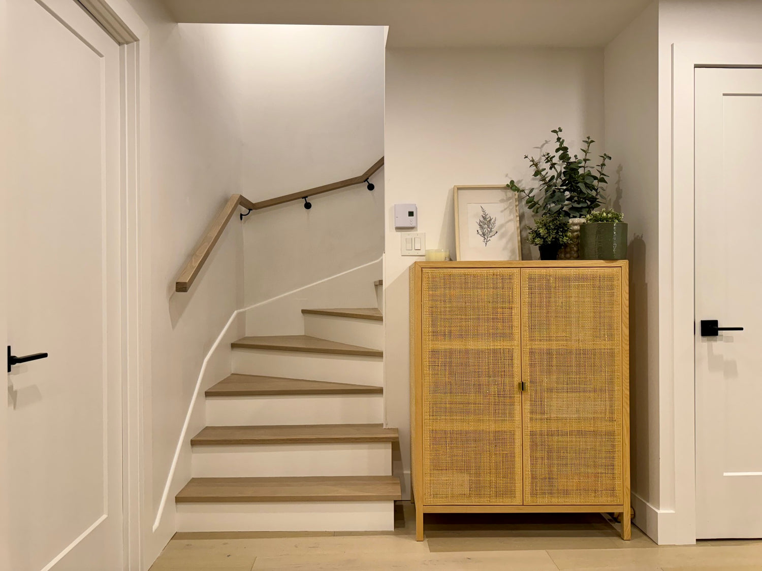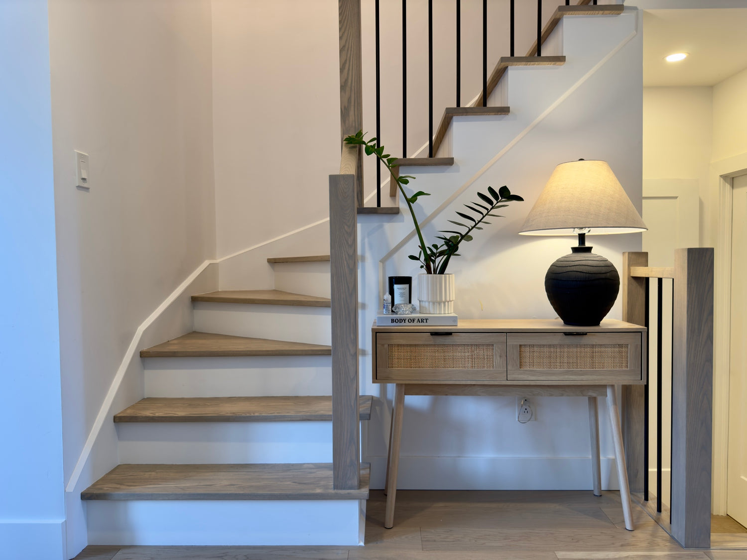 Ash staircase covered with 2 coats of stain as well as 1 coat of matte varnish for a sublime finish